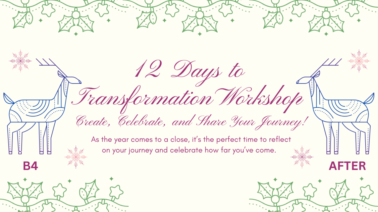As the year draws to a close, it’s the perfect time to reflect on your personal growth, both the small micro shifts and the larger life pivots. The 12 Days to Transformation  Workshop is a special end-of-year session where we’ll guide you through looking back at how far you’ve come, appreciating the journey, and preparing for the future with a renewed sense of clarity and purpose.